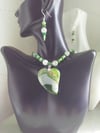 GREEN STRIPED AGATE HEART PENDANT SET