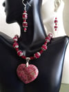 RUBIES W/CHRYSANTHEMUM HEART PENDANT NECKLACE SET