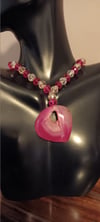 STRIPED PINK AGATE HEART PENDANT NECKLACE