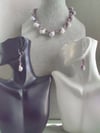 DOUBLE STRAND SHELL NECKLACE W/DARK BEADS