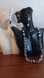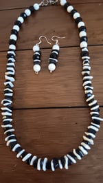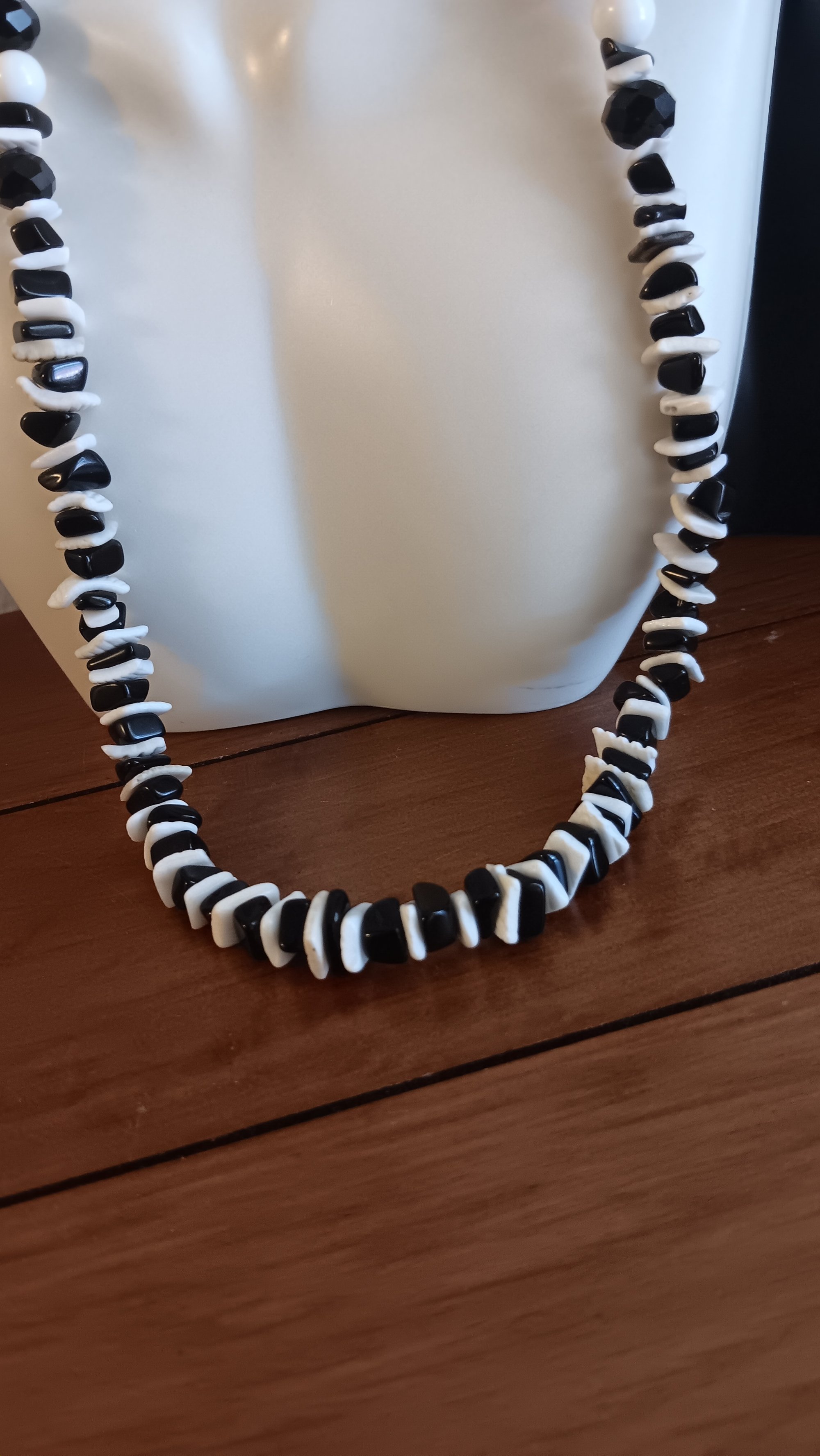 BLACK AND WHITE CRYSTAL BEADS WITH ONYX GEMSTONE CHIPS