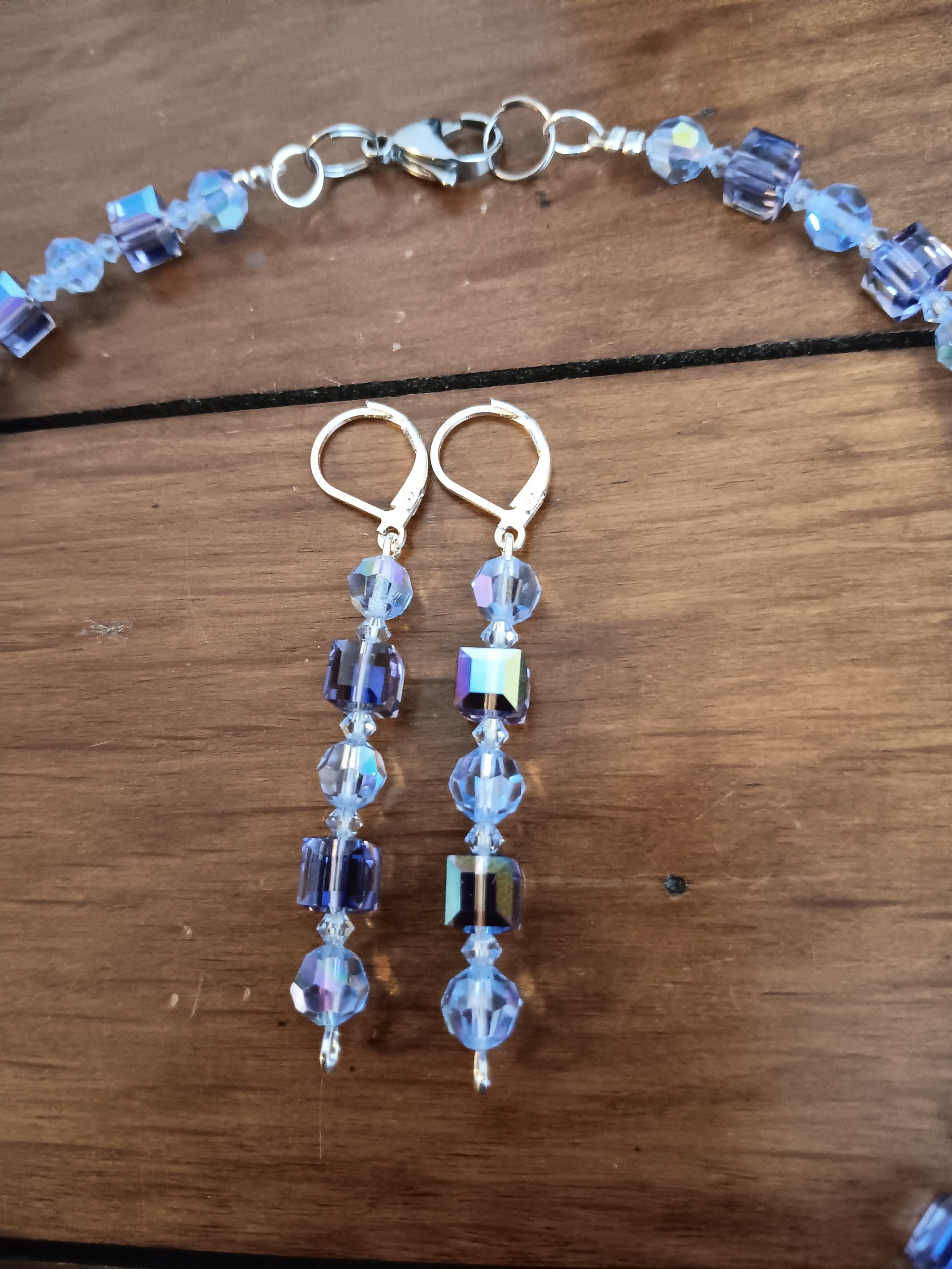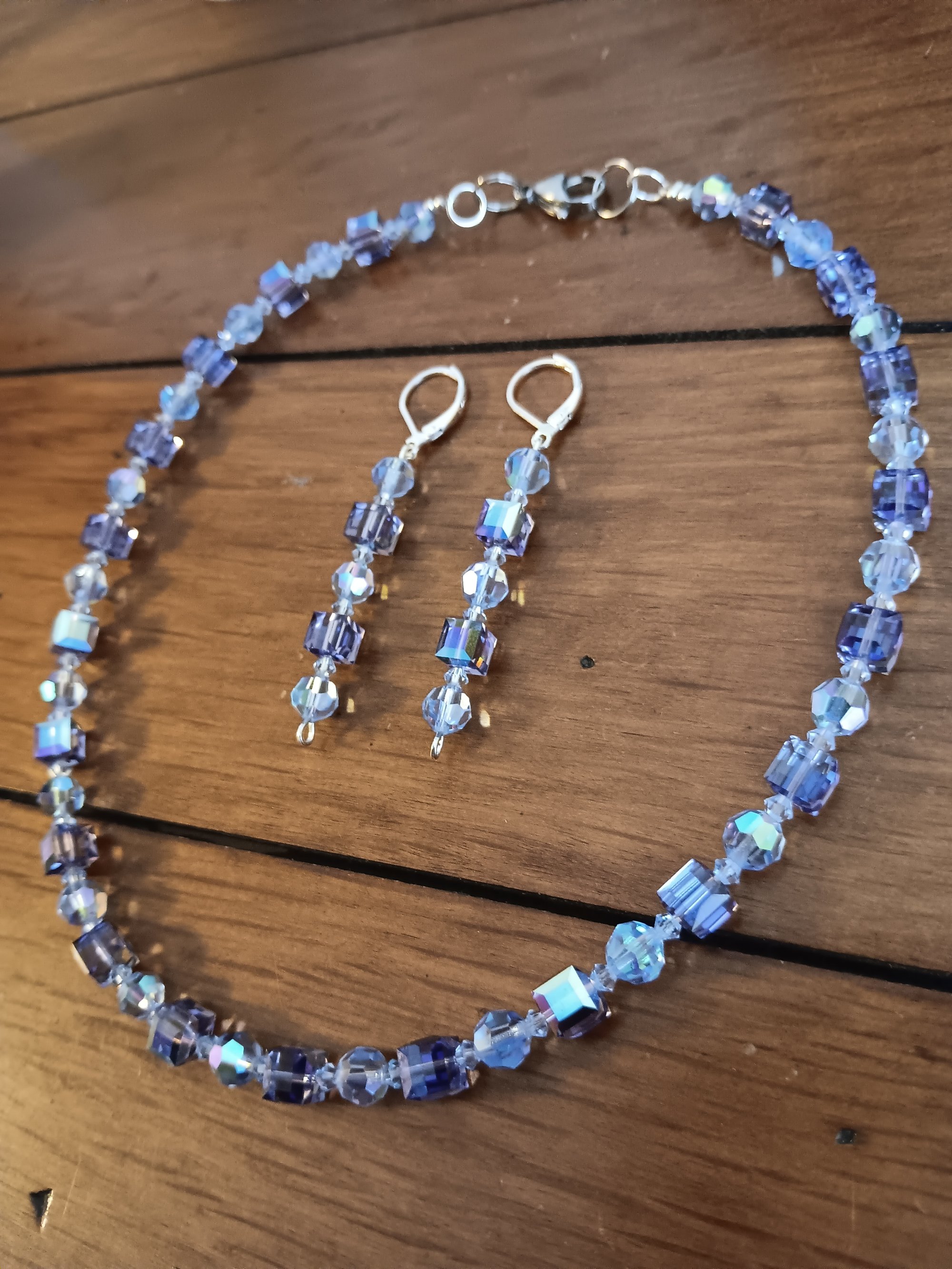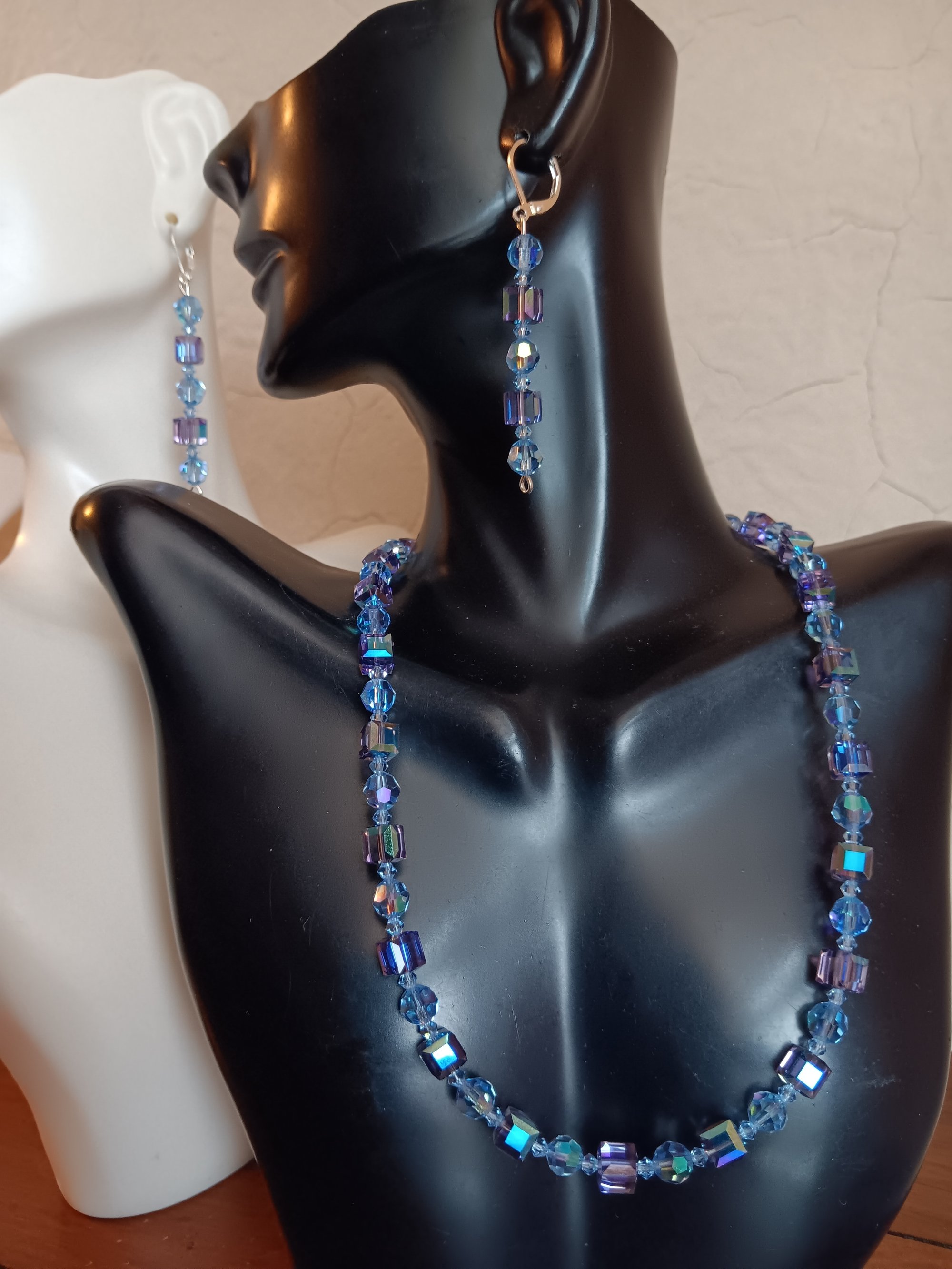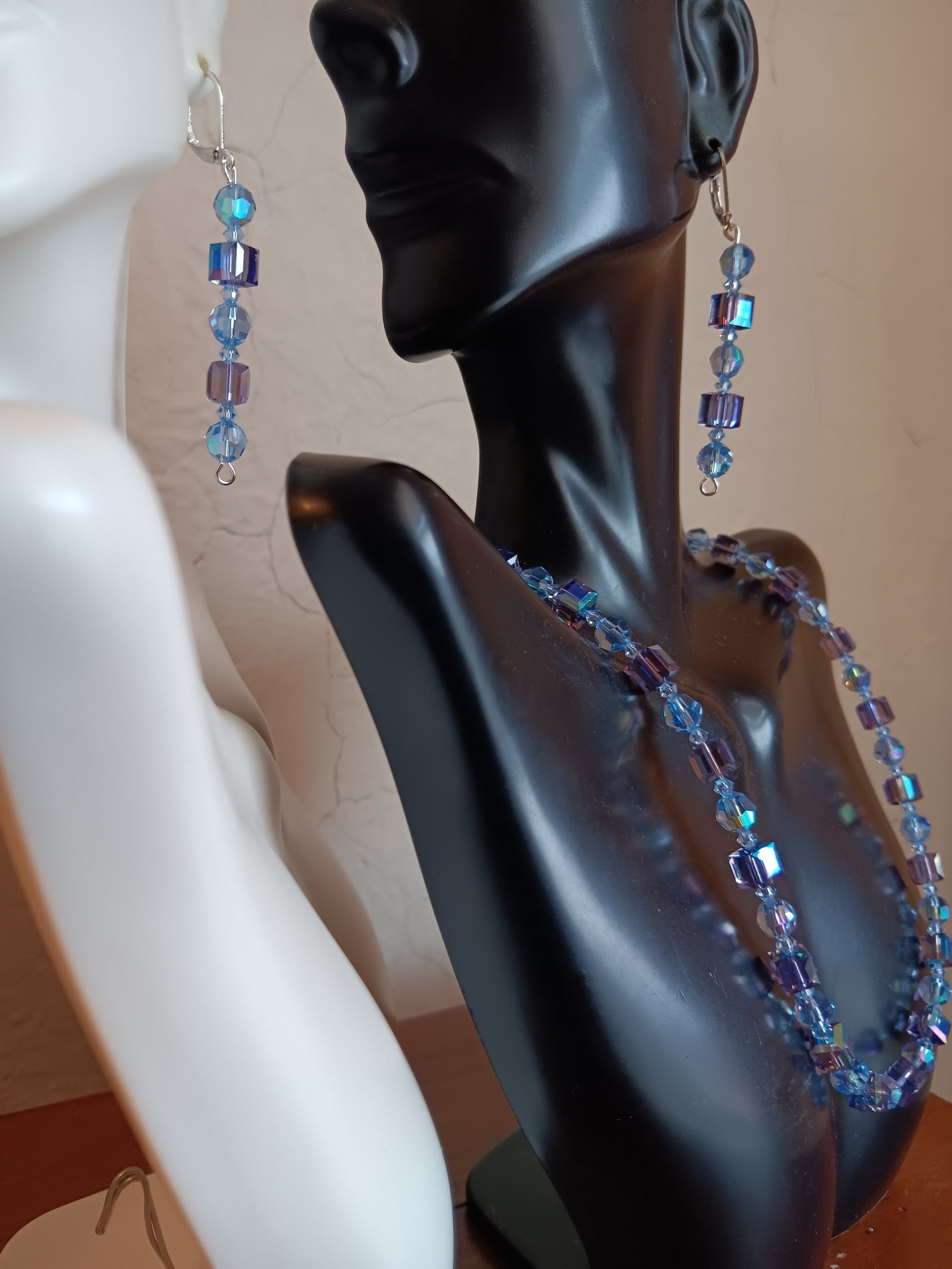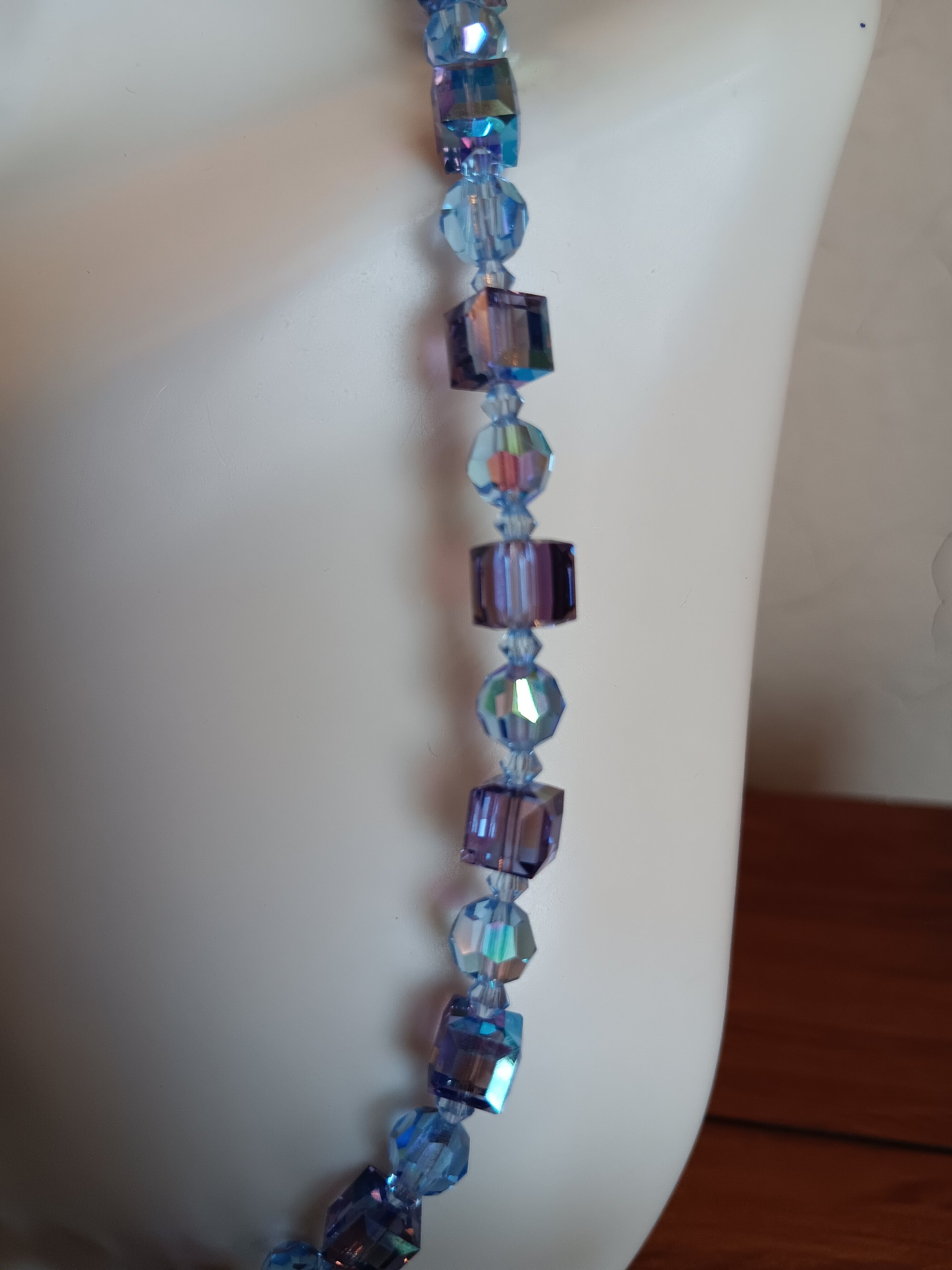 BLUE SWAROVSKI CUBES WITH PRECIOSA AND CZECH BICONE CRYSTAL BEADS