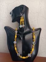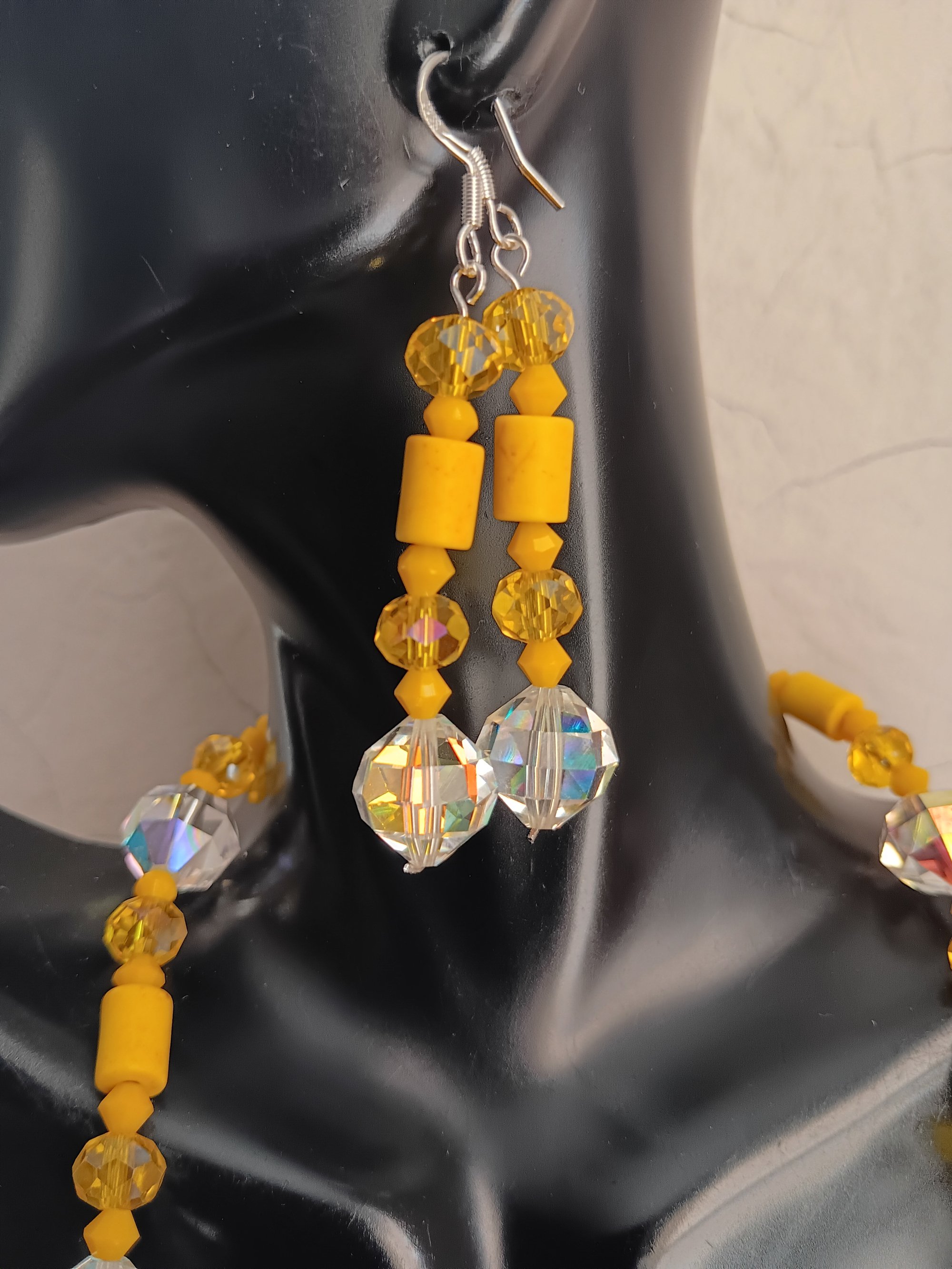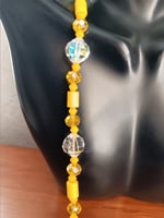 CLEAR SWAROVSKI AB ROCKY BEADS, MINI SWAROSKI BICONES, YELLOW HOWLITE TUBES, YELLOW CRYSTAL BEADS