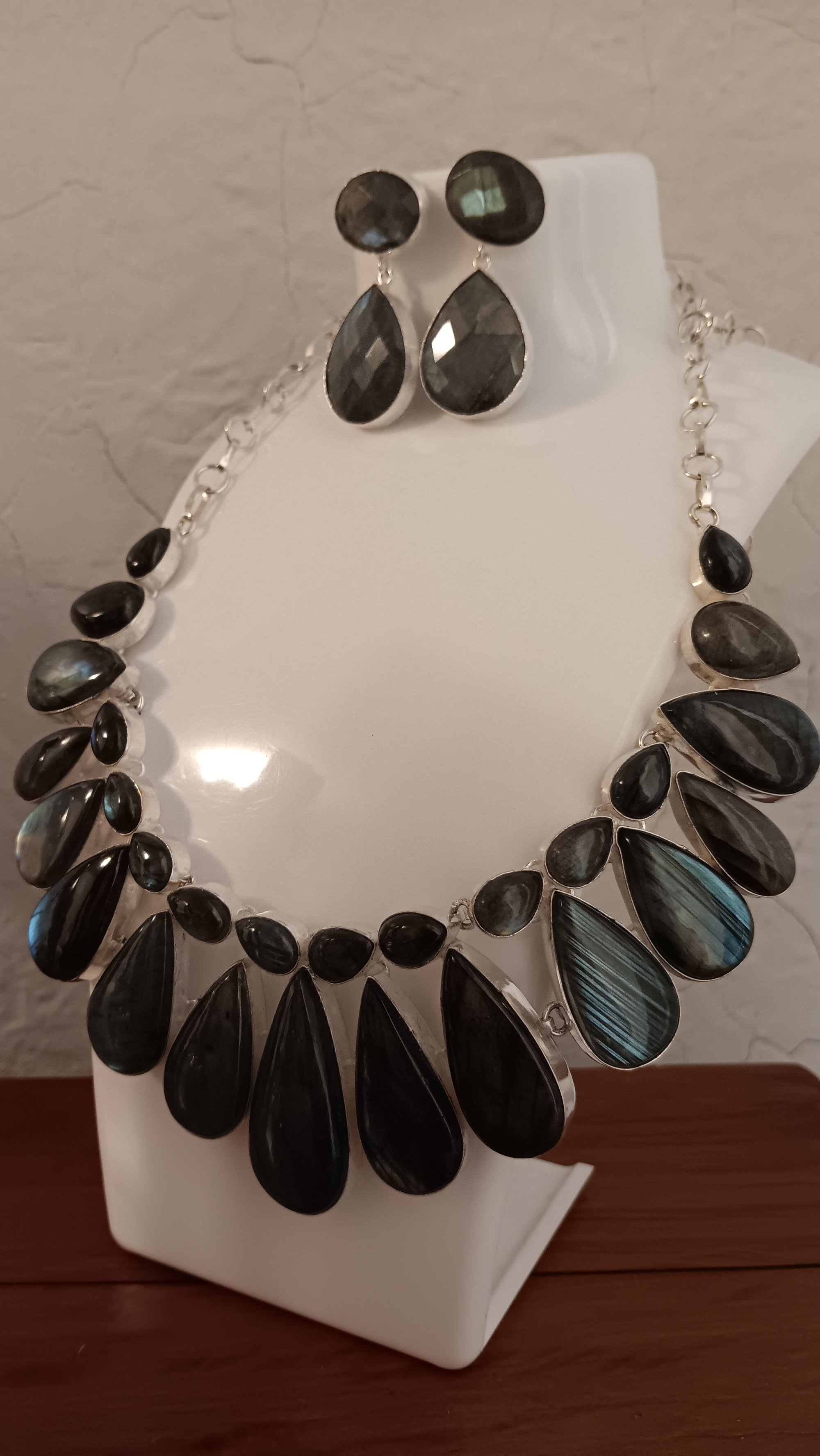 LABRADORITE TEARBDROP BIB NECKLACE AND EARRING SET