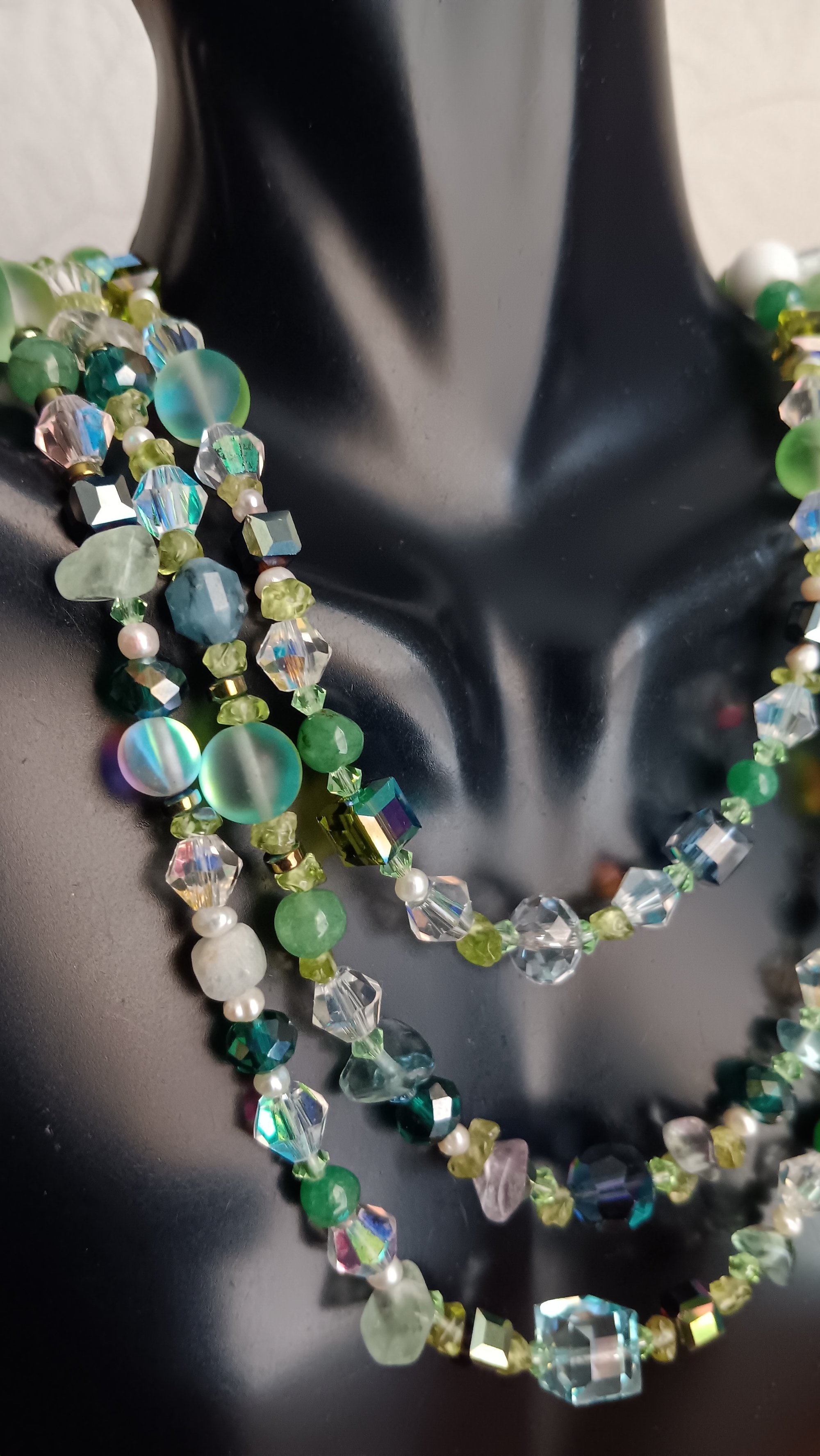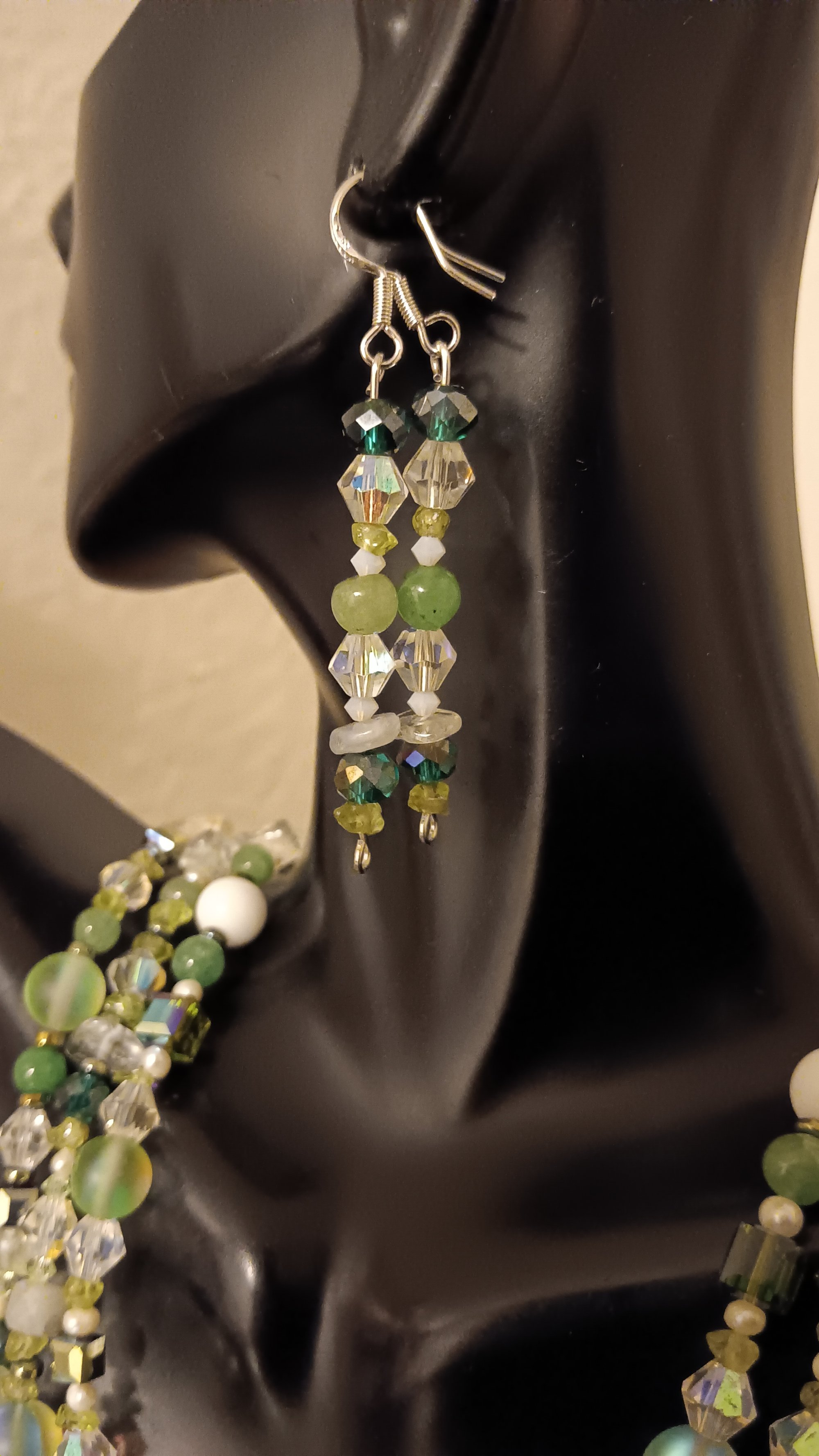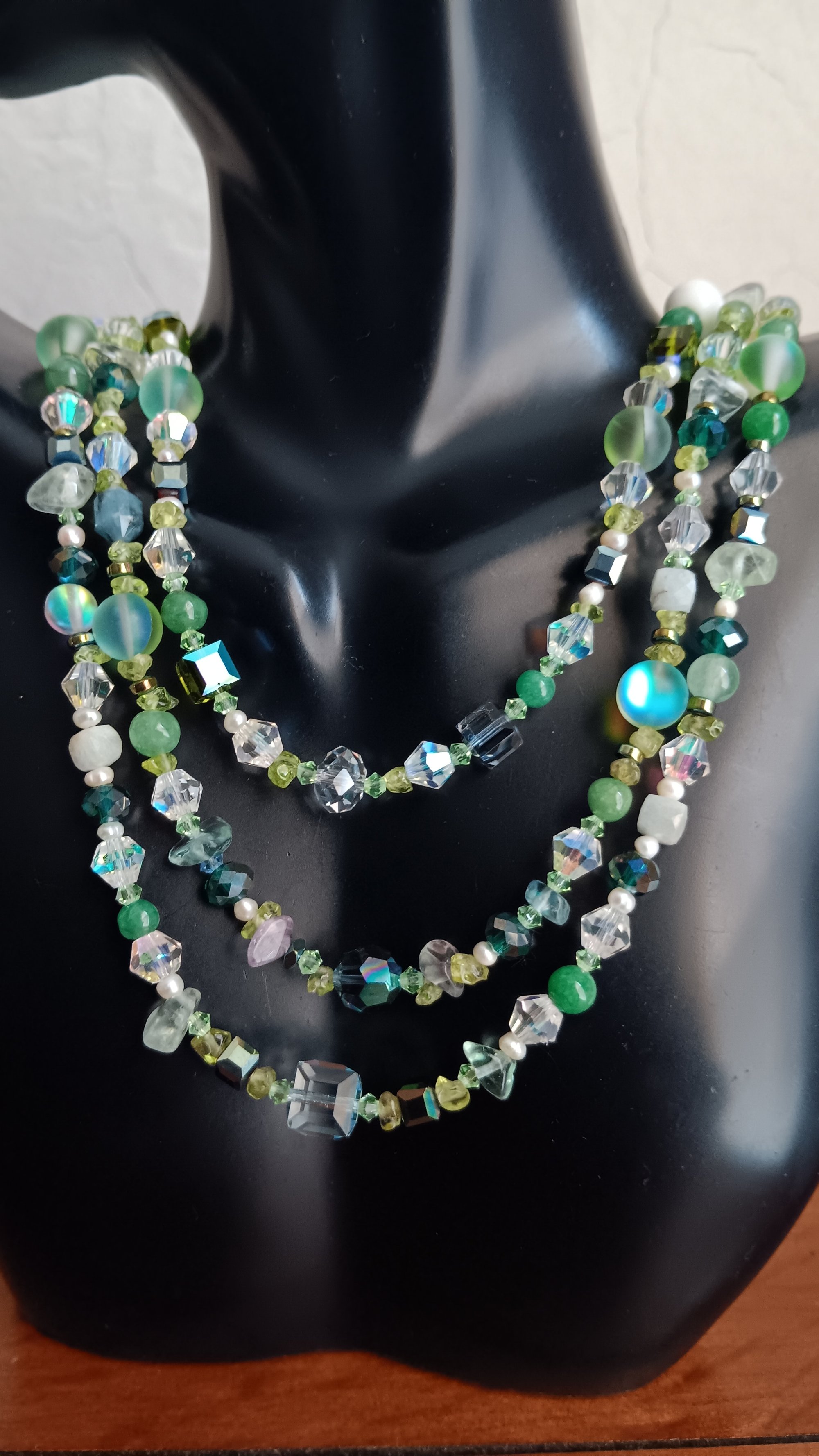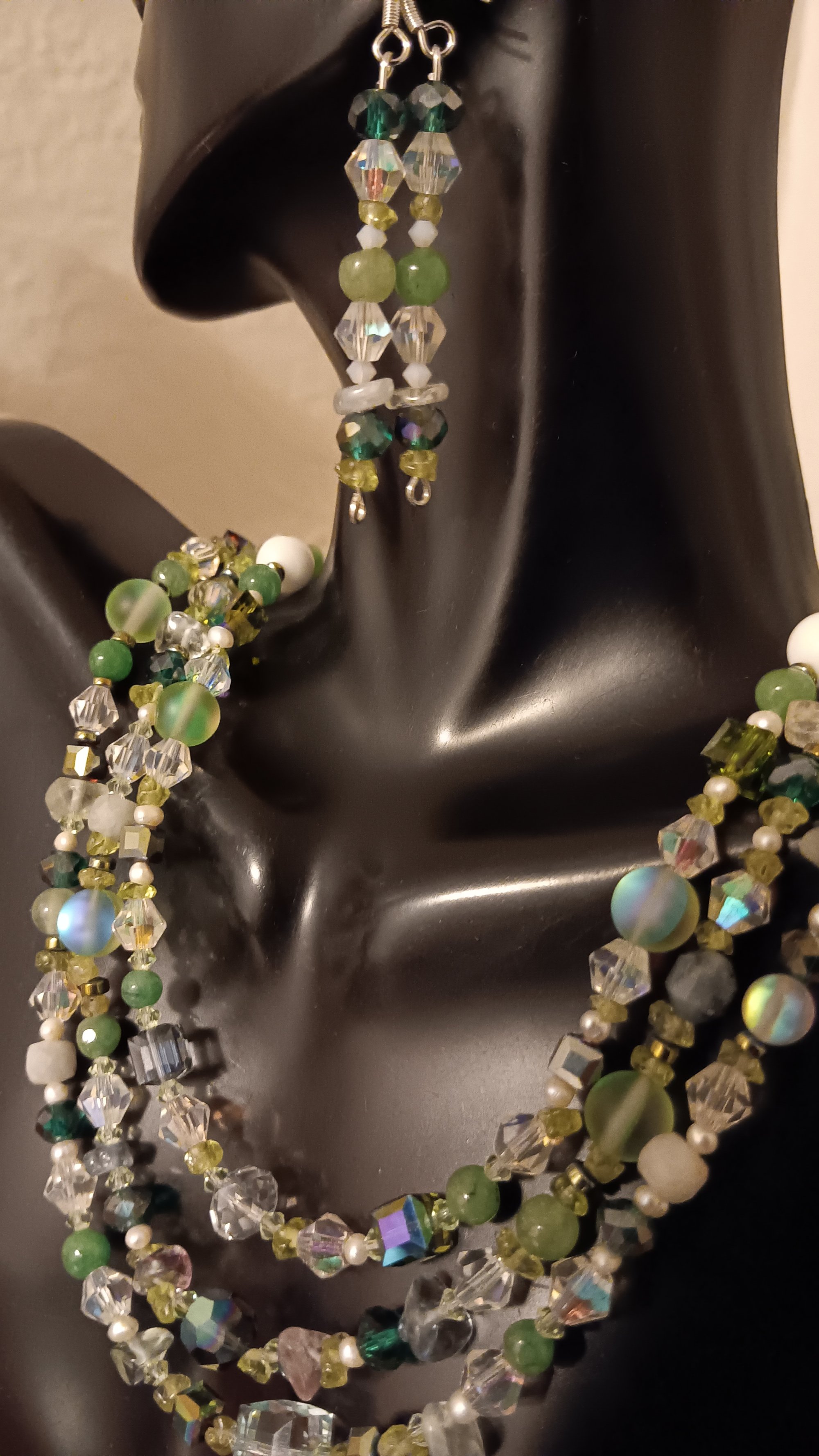 MULTI SHADED GREEN GEMSTONES BEADS, CHIPS AND CUBE BEADS SET