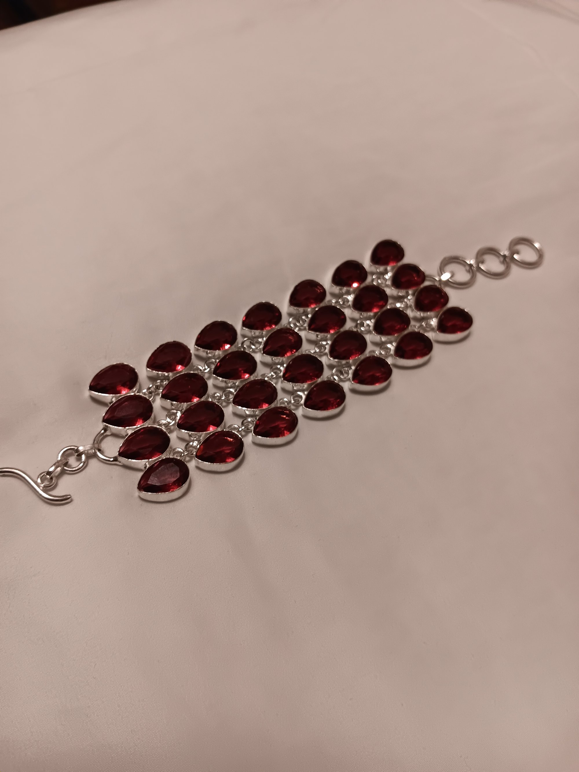 PINK TOPAZ BRACELET, PURPLE MOHAVE AND GARNET NECKLACE AND GARNET EARRING SET